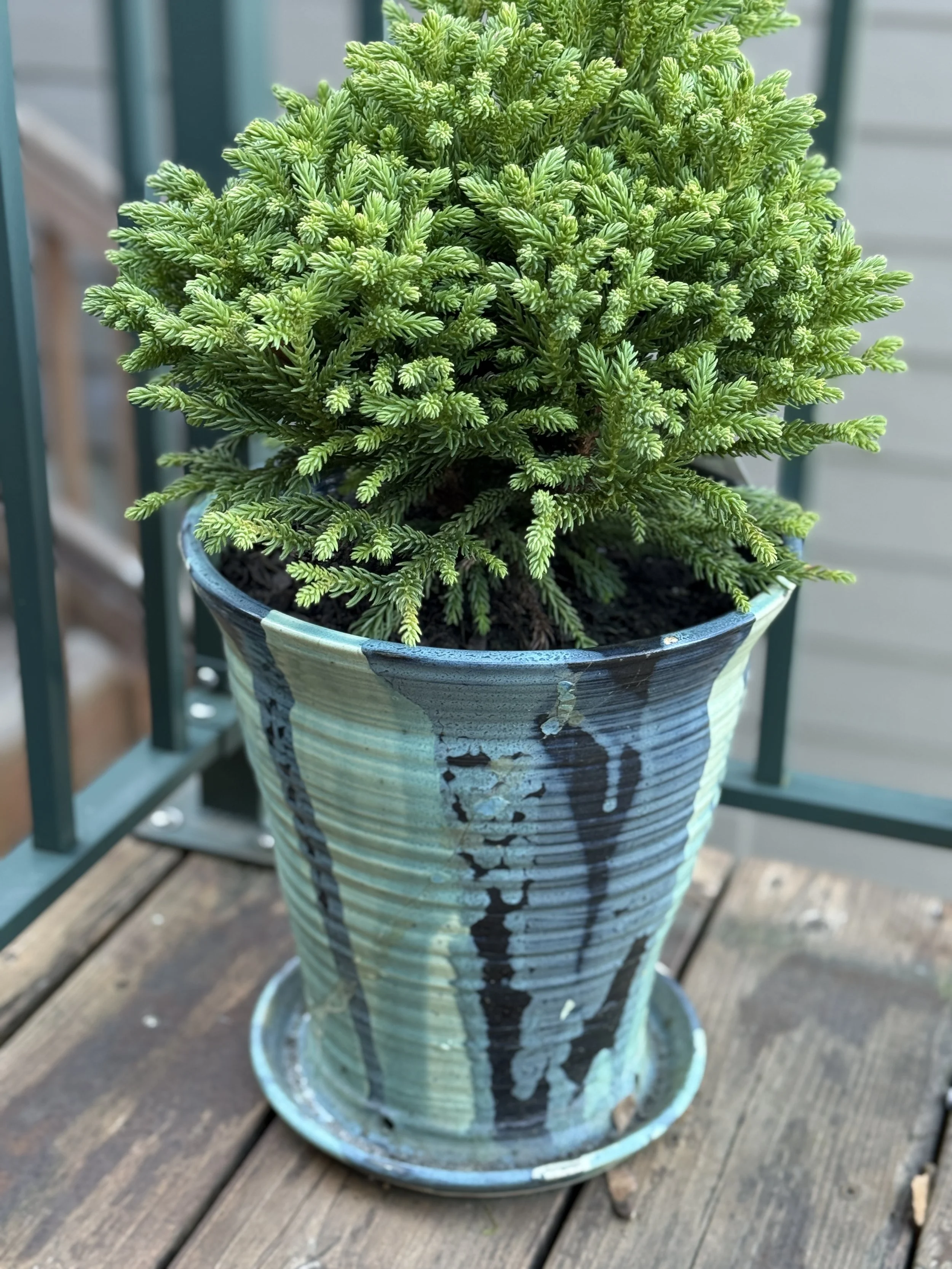 Pieces are handmade in the Columbia Gorge, no two items are exactly alike. They are all stoneware clay, fired to be vitreous, but drainage holes are put into all the planters.
